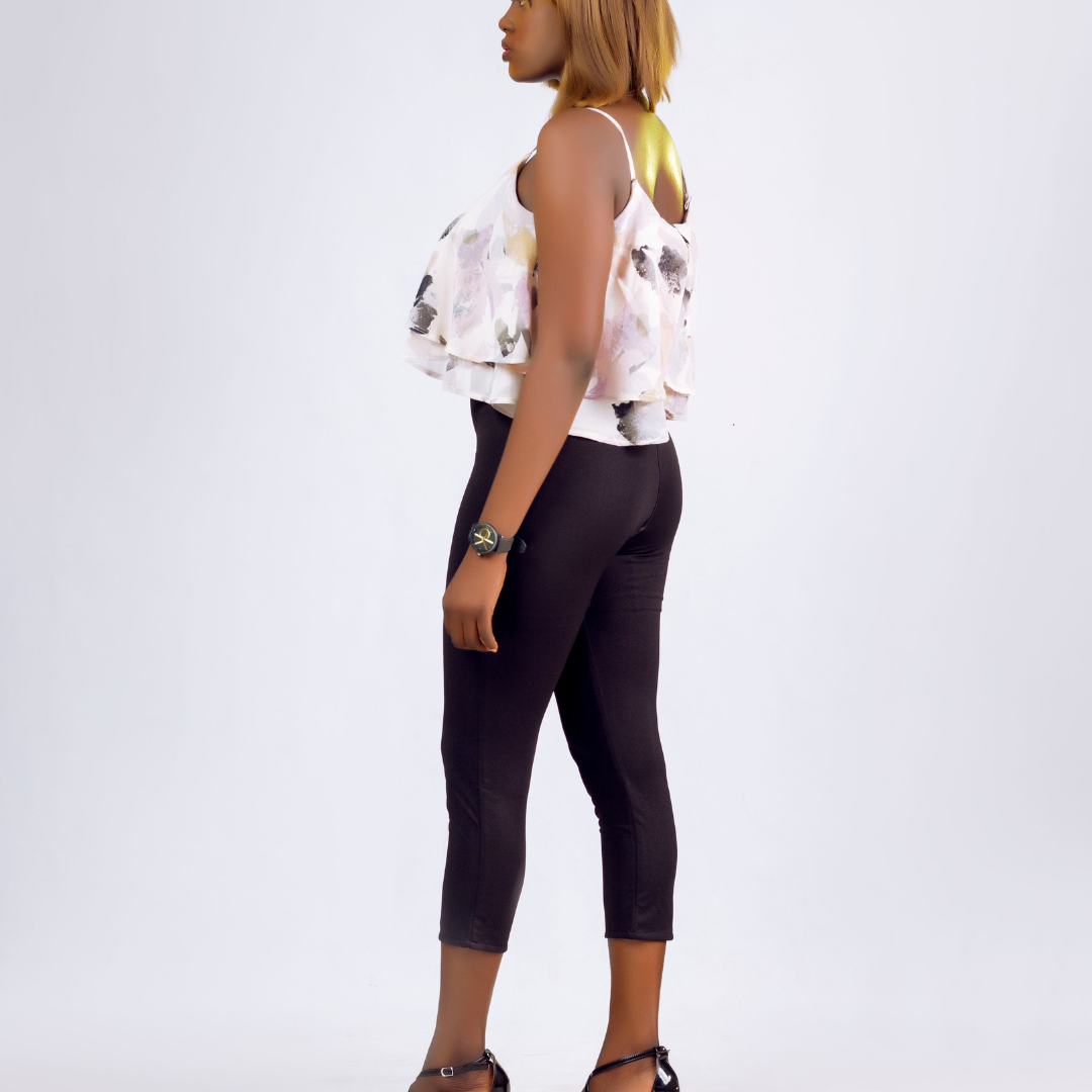 Brown Splatter Print Layered Jumpsuit
