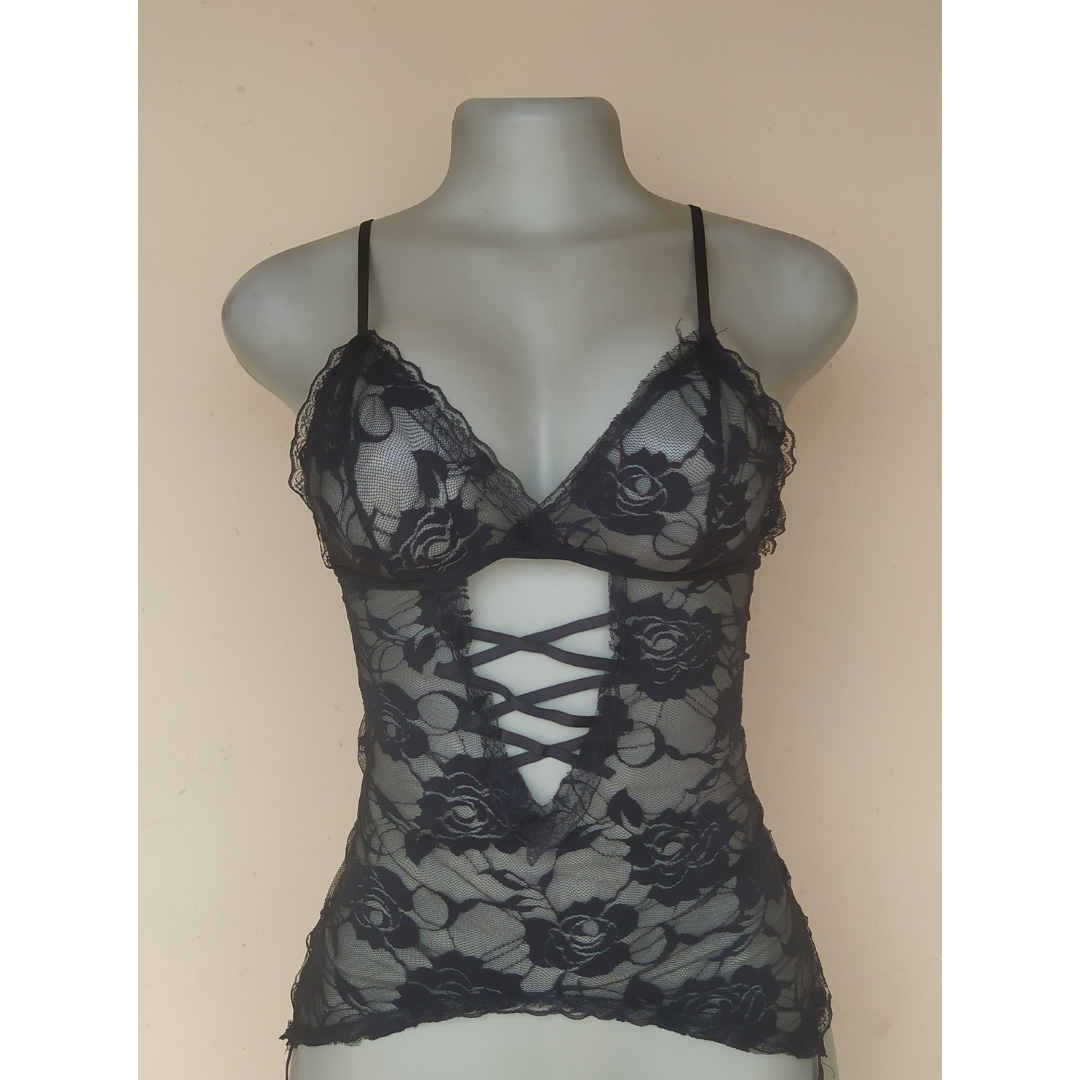 UK 10-12 – Preloved Black Mesh Lingerie Top