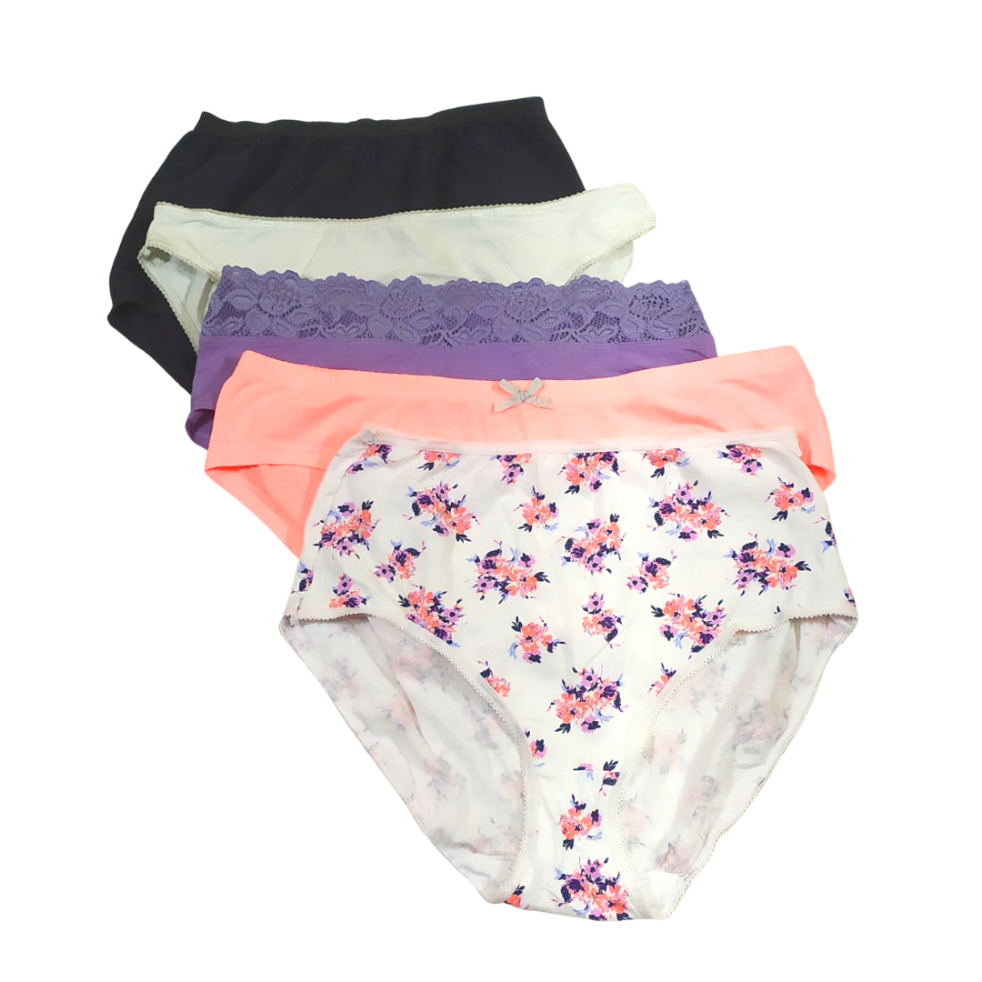 UK 12-14 – Matched Plain And Patterned Cotton Panty