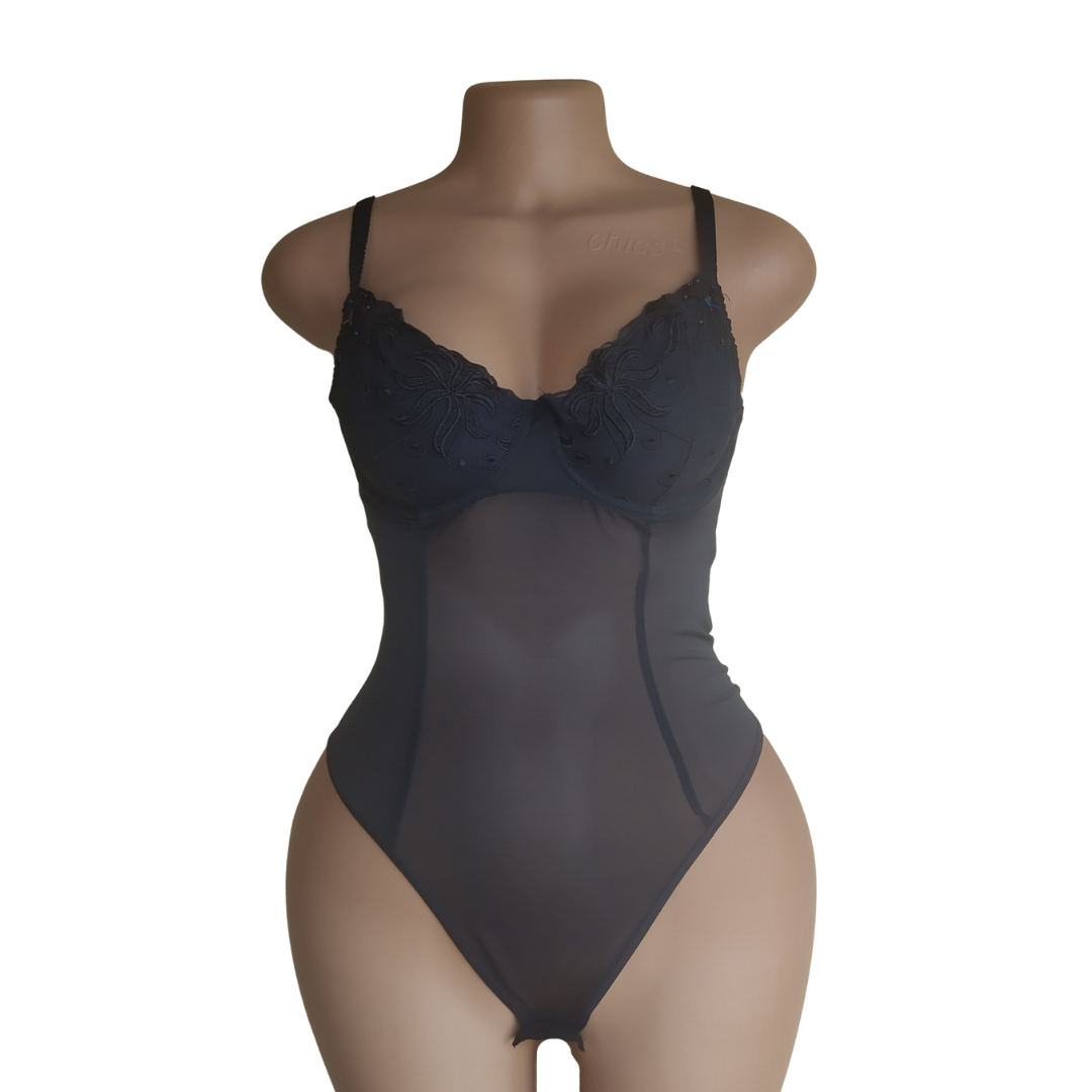 UK 14 – Black Thong Lingerie Bodysuit 38B